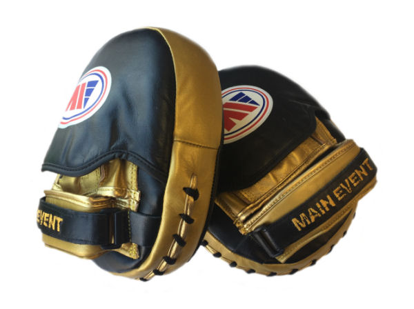 Main Event Boxing Pro Air Cushioned Professional Reaction Focus Pads - Hand made from the best grade leather, with a padded finger cover for extra protection - These pads were designed and tested over a period of 10 months in our own gym with extensive hard hitting trials - These pads are very light and soft, ideal for the fighter that needs sharpening up and looking after their hands too - The Pro Air technology helps to absorb some of the shock and disperse the punch on impact - The pads have a velcro strap closure at the wrist and a padded leather finger protector. The pads are supplied in a handy gym string sack carry bag and the sizes are approx 9 x 8" - There is a mini reaction version that is in production at the moment and will be released later in 2018 to match these pads - These pads need to be bedded in and after the first few times using them, please take 2 minutes to realine them into a comfortable shape, once they are bedded in after 4 or 5 times use, they will hold their shape moulded to your hands.