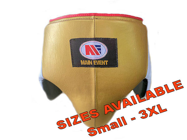 Main Event Boxing Pro Leather Groin Guard Protector - One of the best products available - Comfortable, durable and very well made - these guards give excellent all round protection and are highly recommended for bouts and sparring - Manufactured with Main Event top grade Leather and a soft latex foam padding, the cup area is well padded and gives the best protection possible - The Straps are elasticated with a Velcro closing.