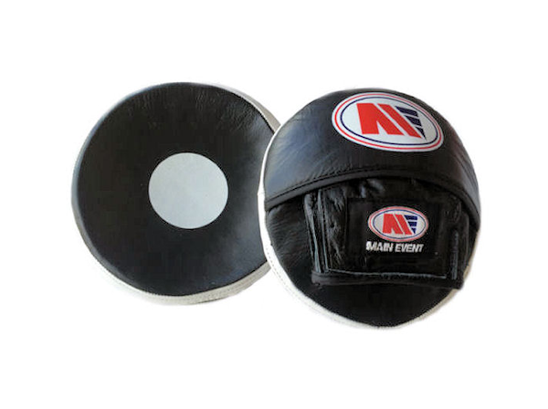 Main Event Leather Pro Reaction Scoop Punch Mitts Speed Focus Pads - Made from a top quality leather, these are small and ideal for speed work helping to sharpen up boxers. They have a good fit for the Coach and padded finger covers for extra protection for both the Coach and Boxer.