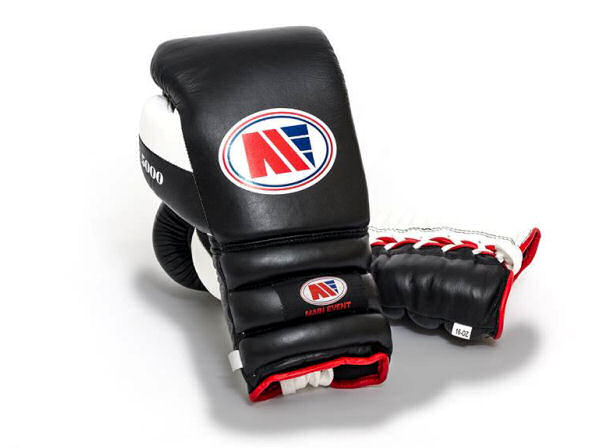 Main Event PSG 5000 Lace Up Pro Spar Boxing Gloves Black White - Hand made from a high grade leather - Main Event have developed these top spec sparring gloves over 24 months of continued gym trials throughout the UK - The inner padding is constructed using the finest triple layered combination, of both high density impact and open cell soft inner foams that help to provide a comfortable all round fit - The gloves are ergonomically contoured to follow the natural shape of the hand - This allows for easy fist closure and promotes correct punching technique, which in turn can help reduce the risk of injury - The wrist has a shock absorbing style 3 layer ribbed padding with a strong and secure lace fastening to help provide the wrist with further protection - These gloves are an ideal all round training glove - They are supplied in a handy gym carry bag.