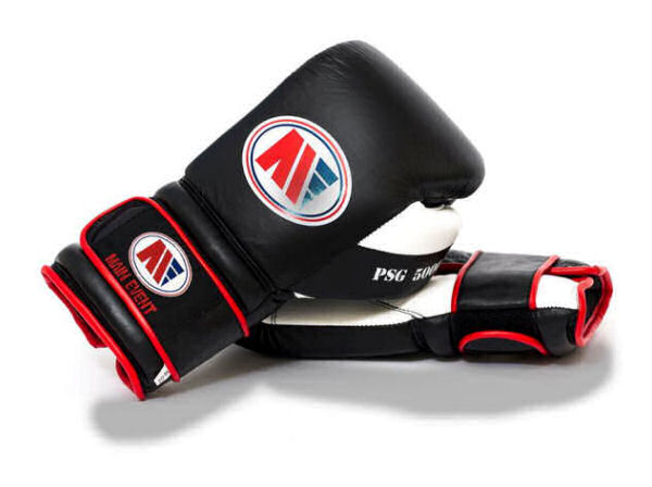 Main Event PSG 5000 Pro Spar Boxing Gloves Velcro Black White - Hand made from a high grade leather - Main Event have developed these top spec sparring gloves over 24 months of continued gym trials throughout the UK - The inner padding is constructed using the finest triple layered combination, of both high density impact and open cell soft inner foams that help to provide a comfortable all round fit - The gloves are ergonomically contoured to follow the natural shape of the hand - This allows for easy fist closure and promotes correct punching technique, which in turn can help reduce the risk of injury - The wrist has a shock absorbing style padding with a leather strap and velcro fastening to help provide the wrist with further protection - These gloves are an ideal all round training glove - They are supplied in a handy gym carry bag.